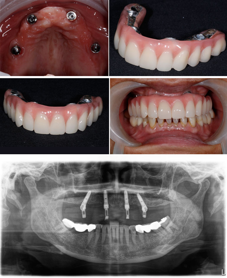 : Using 4 – 6 implants to support a new set of teeth in each jaw.