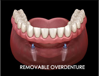 Used for full dentures when no natural teeth remain, including hybrid fixed prostheses supported by all-on-4 implants or removable overdentures supported by 2 implants.